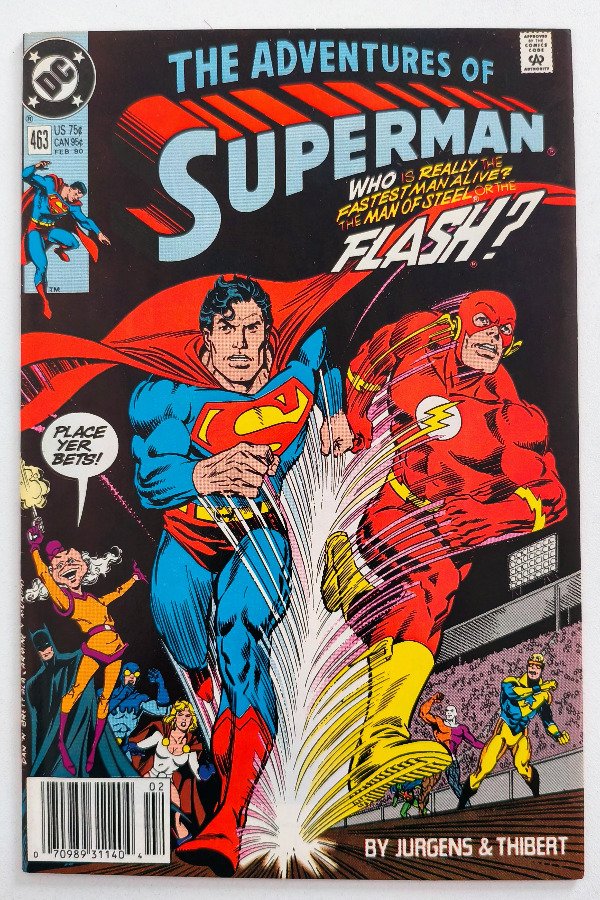 Key issue: Primer mano a mano entre Superman y Wally West como Flash, en una historia en la que Mr. Mxyzptlk los obliga a competir en una carrera alrededor del mundo para mandarlo de vuelta a la Quinta Dimensión. Portada homenaje a la clásica primera carrera de Superman #199 (1967)