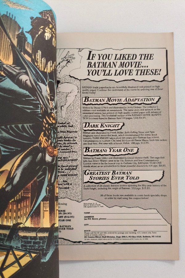 Key issue: Adaptación oficial de la mítica película de 1989 de Tim Burton, con guiones de Dennis O'Neil y arte de Jerry Ordway