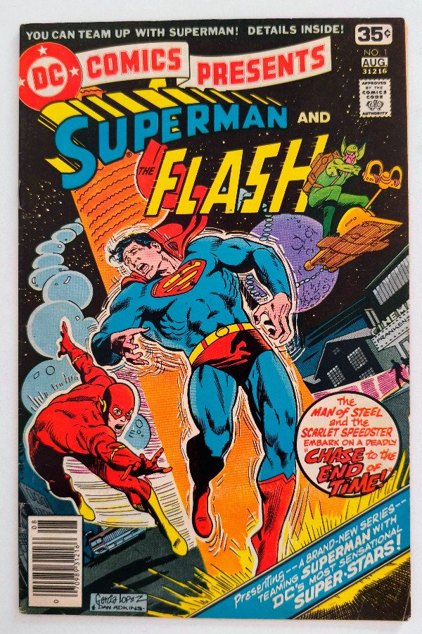 Key issue: Primer número de la clásica serie de team-ups del Hombre de Acero con otros héroes, Superman y Flash son secuestrados por dos razas alienígenas en guerra y se ven arrastrados a una misión temporal. Con arte del gran José Luis García López