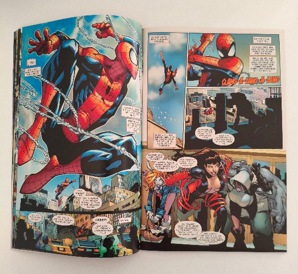 Key issue: Portada variante por J. Scott Campbell. Primer número extra grande con el tercer relanzamiento de la serie de ASM, primer cameo/aparición de Cindy Moon (Silk).