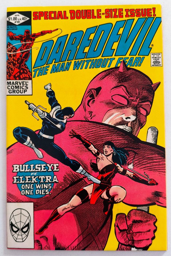 Key issue: Clásico número doble, con una de las historias más importantes del Hombre sin Miedo: la muerte de Elektra en un duelo salvaje con Bullseye, y una de las portadas más icónicas de Daredevil. Por Frank Miller y Klaus Janson.