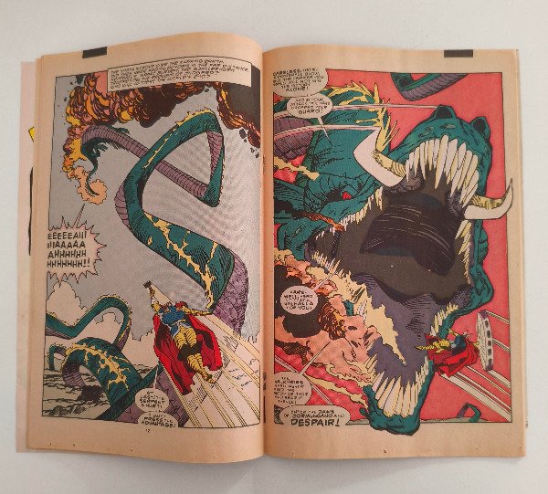 Key issue: Uno de los números más célebres de la etapa de Walt Simonson (y más experimentales!), en el que todo el arte del número va a página completa, con el duelo épico de Thor contra la Serpiente de Midgard.